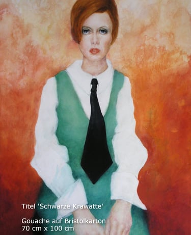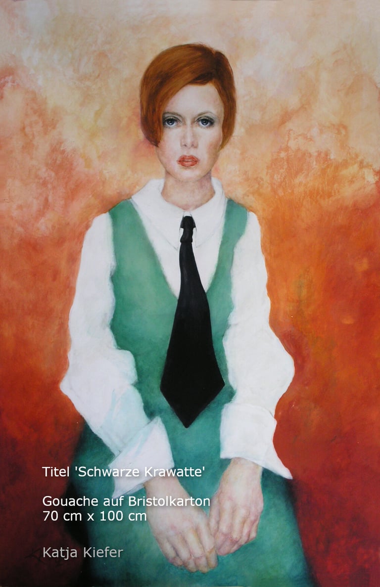 Das ist mein Ansatz, meine Haltung zum Portrait. Ob es ein minimalistischer Wimpernschlag wie in den SMALL TALK PORTRAITS ist oder umfassender – wie in einer früheren Bildhommage an Lesley Hornby mit Schwarze Krawatte.